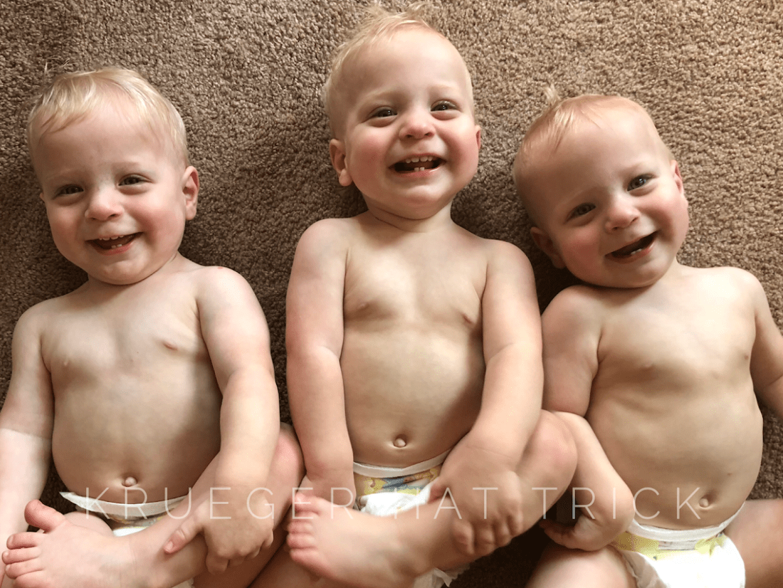 Hi! I’m Katelin Krueger, a stay-at-home mom of spontaneous triplet boys! Tom (my lovely husband) and I are so excited to share our wonderful little world with you! We were married in June 2016 after dating for 6 years, found out we were pregnant in October *yay!*, then in November that we were having TRIPLETS *what?!*. Our three beautiful boys were born in May 2017 – the month before our first anniversary – with a NICU stay of 42 days. It has already been a wild ride, for sure! I’ve been writing things down to prepare for this amazing blog for a while now and I cannot wait to share it with you! Although this is already live, I will not begin regular posts until May of this year (just a couple of months away!). Please feel free to follow me on Instagram or FaceBook!